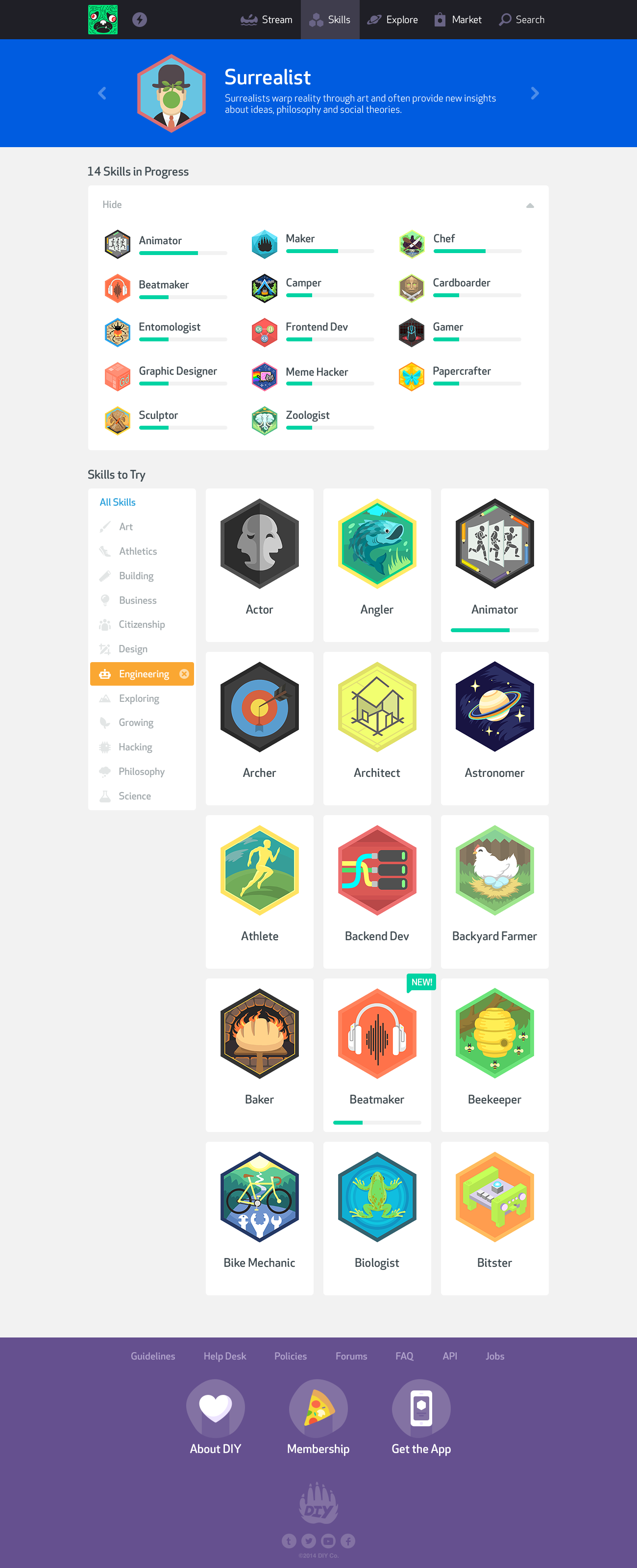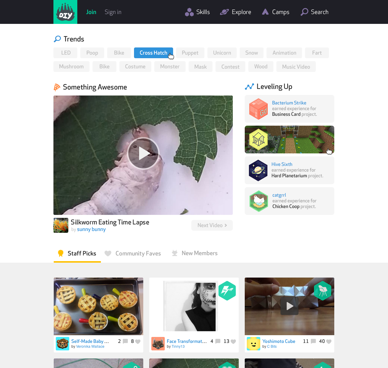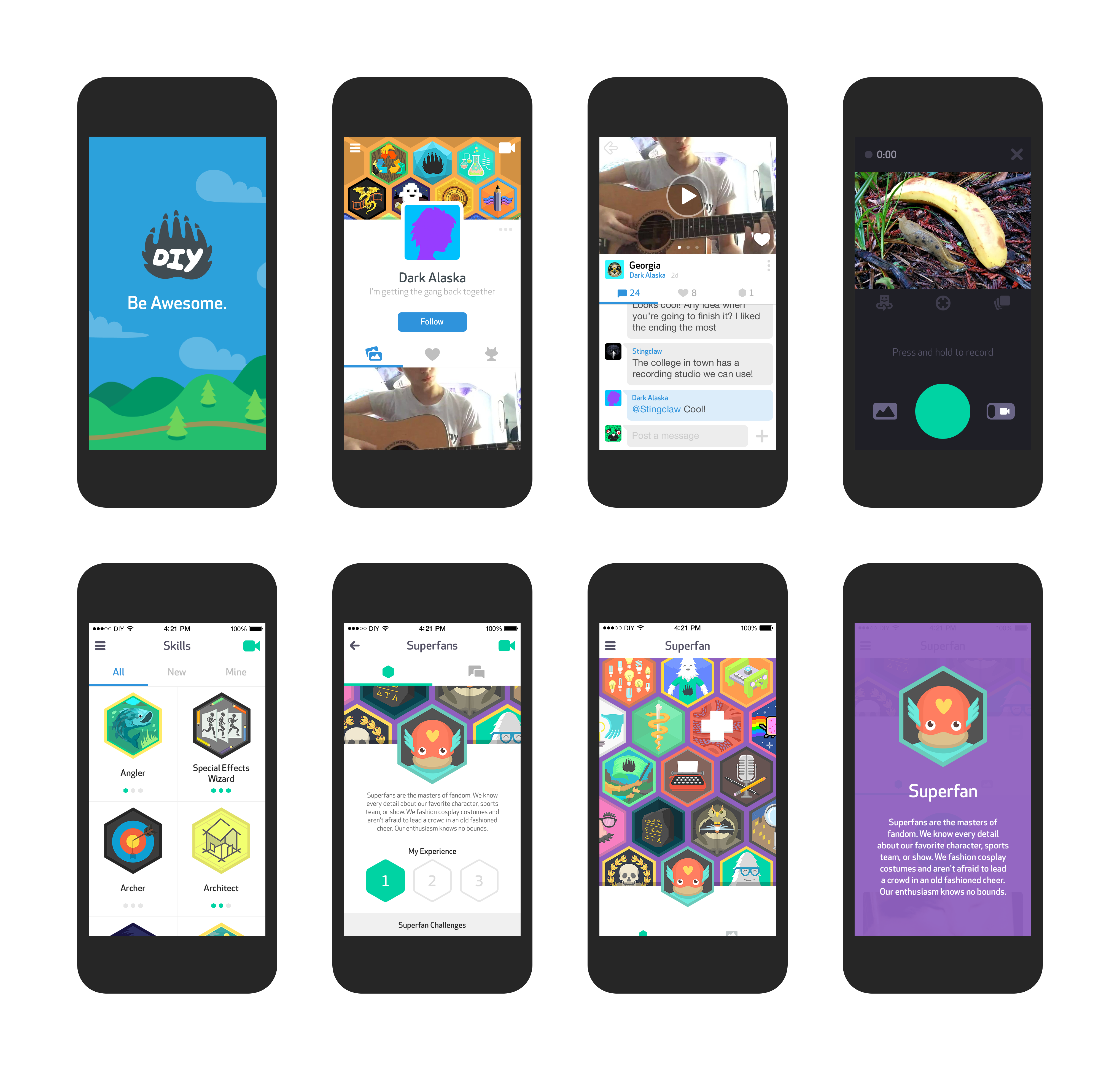 While leading design at DIY, we worked through multiple product cycles and experiments. I enjoyed designing a first-of-its-kind community experience, focusing on social features, learning content, and safety.