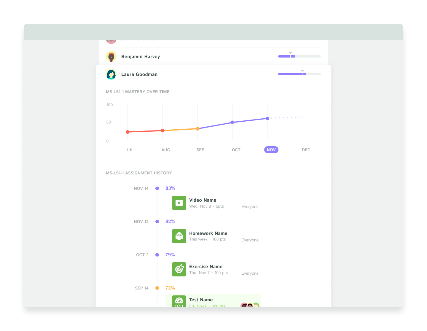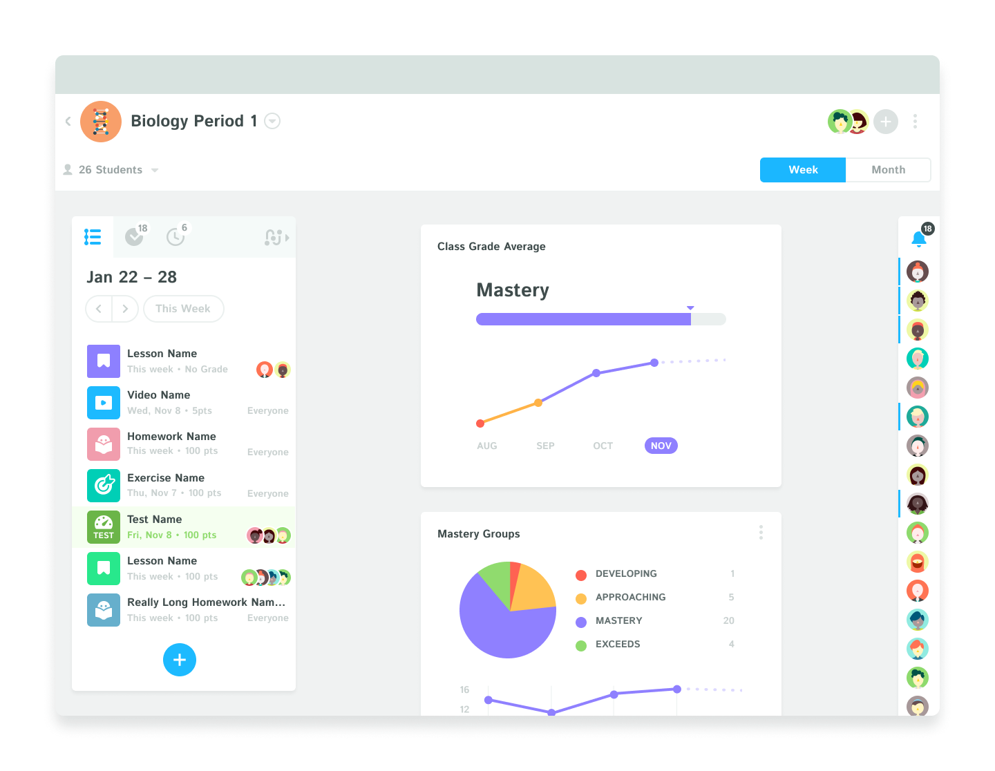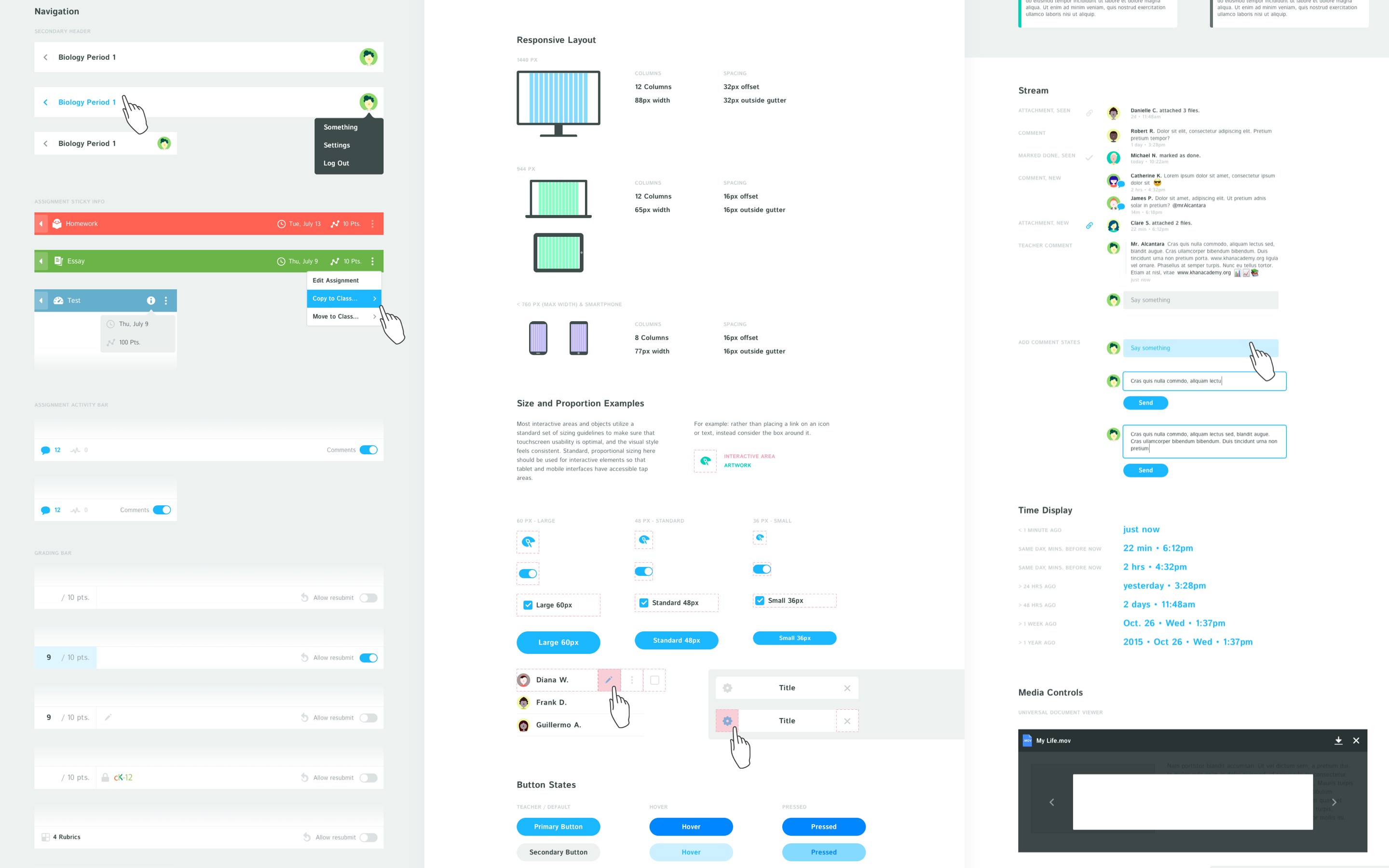 When talking with teachers, we learned that many work with different devices throughout the day, and need to context switch often. To make Kiddom the most accessible and consistent on iOS, Android, and web – we created a unified, responsive UI design system in React. This also allowed the product team to test new features with less design debt.